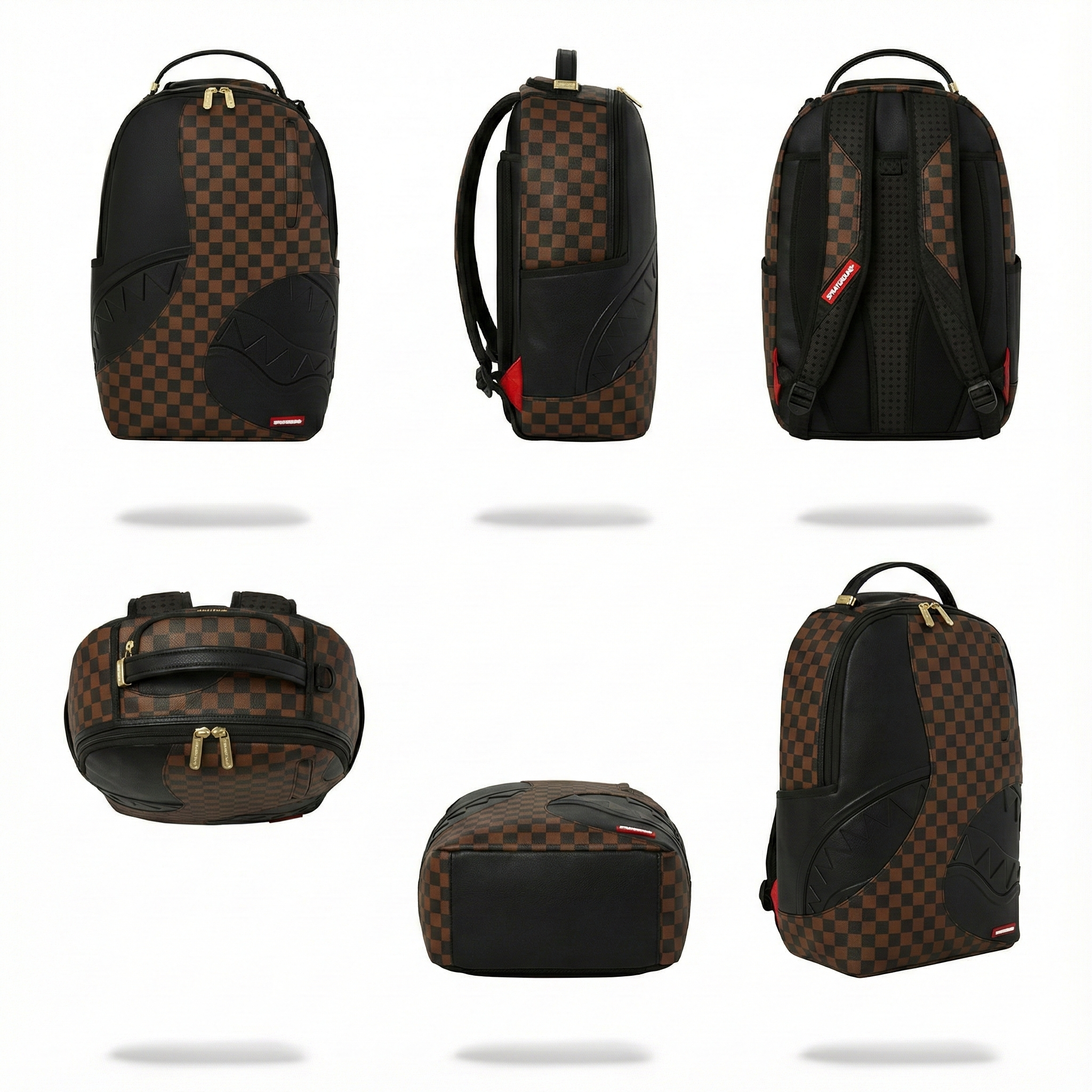 - תיק גב יוקרתי ואופנתי של Sprayground בצבע חום שחור משבצות עם הדפס דמוי עור