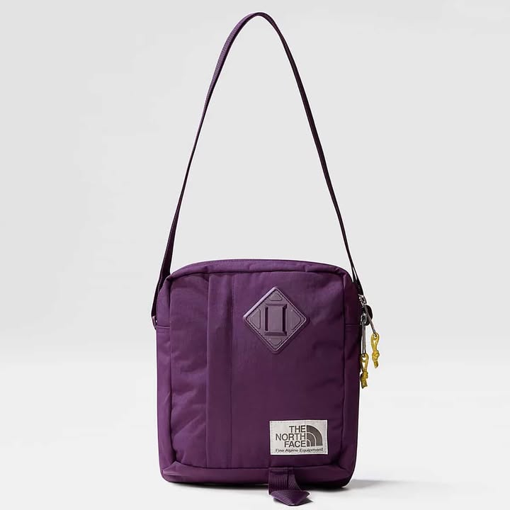 תיק כתף קומפקטי ומסוגנן של The North Face בצבע סגול כהה אופנתי. התיק כולל עיצוב קלאסי עם רצועת כתף דקה לנשיאה קלה ומכיל תא ראשי מרוכסן לאחסון פריטים חיוניים כמו טלפון, ארנק ודרכון. בחזית מופיעים טלאי היהלום ולוגו