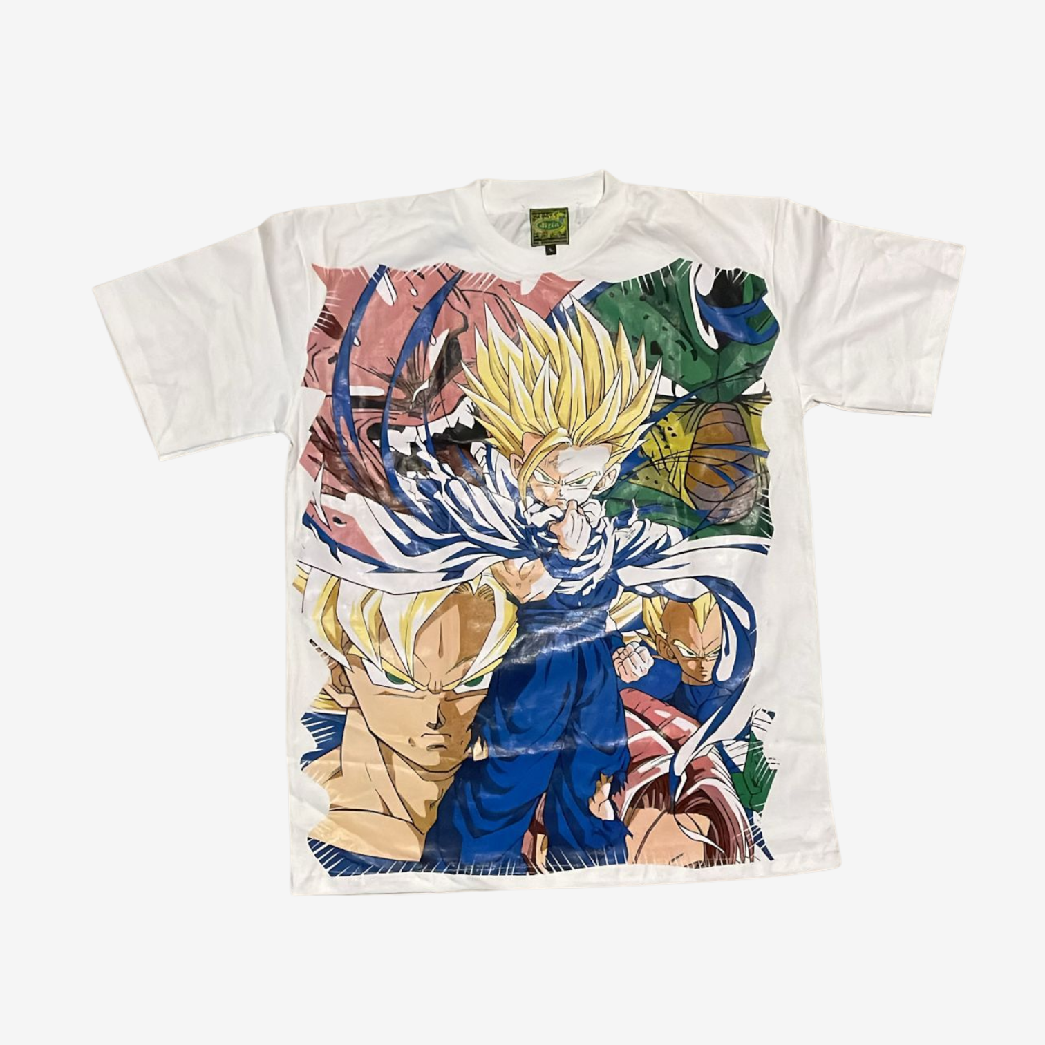 חולצת טי-שירט בעיצוב וינטג' בהשראת סדרת האנימה המיתולוגית Dragon Ball Z. החולצה מציגה הדפס גרפי גדול ומרשים של גוקו ופיקולו עם כיתוב יפני אותנטי. עשויה בד כותנה איכותי ונוח, בגזרה משוחררת שמתאימה לכל חובב אנימה וסטריט-וור.