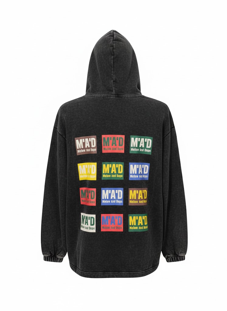 שדרגו את הסטריט-לוק שלך עם הקפוצ'ון המבוקש מבית M'A'D. הפריט מגיע בצבע שחור שטוף (Washed) המעניק מראה וינטג'י מחוספס, וכולל לוגו M'A'D רקום ובולט בחזית. הגזרה היא אוברסייז משוחררת ונינוחה, עם דיטיילים של קרעים מעוצבים (Distressed) למראה אותנטי ובועט. עשוי מבד עבה ואיכותי עם כיס קנגורו קדמי, כובע רחב וסיומת מנגז' אלסטית בשרוולים. מושלם למי שמחפשת שילוב של נוחות מקסימלית וסטייל אורבני בלתי מתפשר.